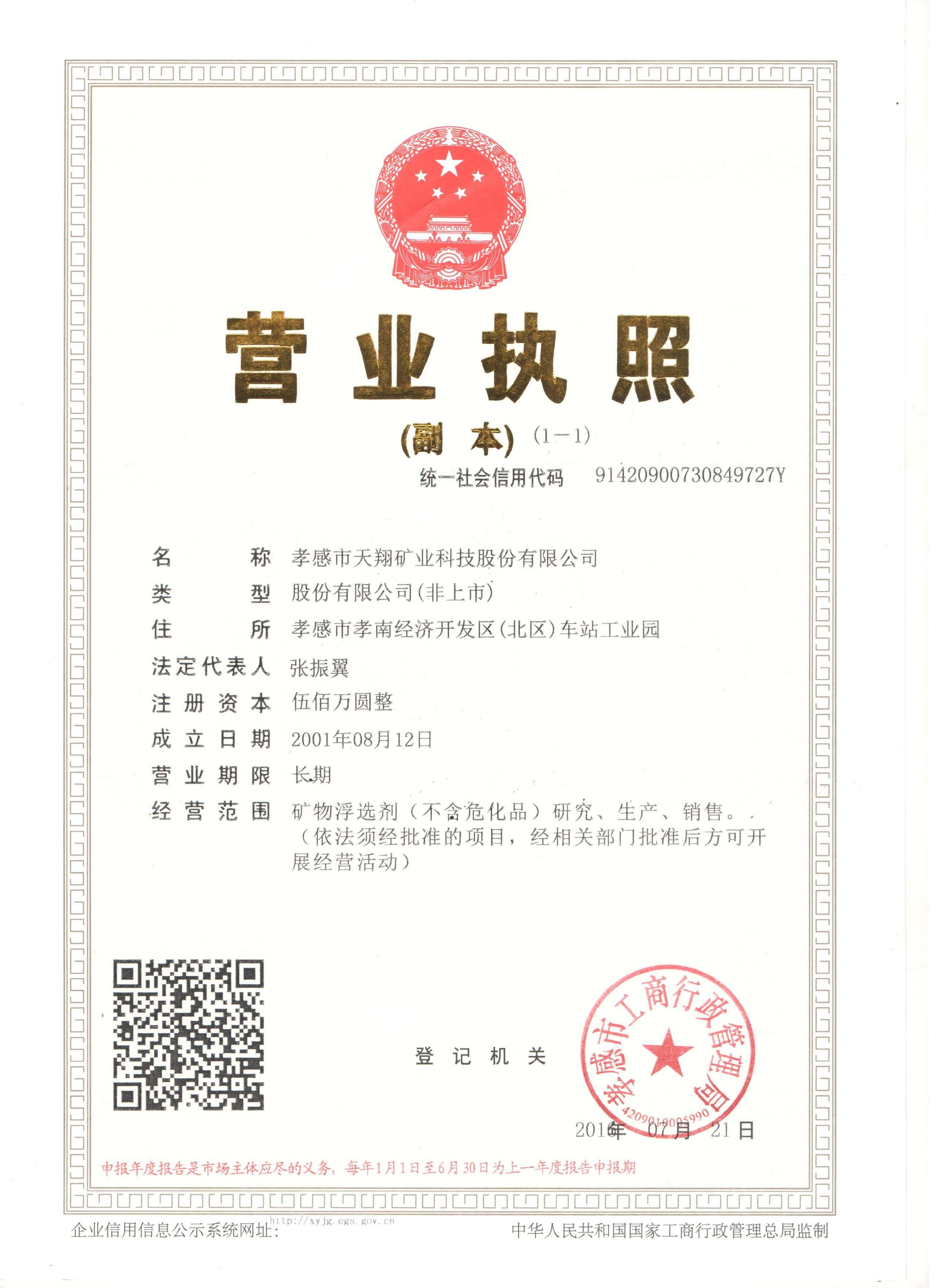 孝感市天翔礦業(yè)科技股份有限公司是一家專業(yè)從事氧化礦浮選藥劑研究開發(fā)和生產的企業(yè)。成立于1996年,經過20多年的研發(fā)與生產實踐,產品覆蓋磷礦、鋰礦、螢石礦、鎢礦、錫礦、鈦鐵礦、鋁土礦、稀土礦等多礦種的浮選藥劑,在業(yè)內享有一定知名度。一份耕耘,一份收獲,多年的積累一定會產生行業(yè)認可的高端產品。公司將會提供給礦山高效、有競爭力的產品,會與礦山企業(yè)一道,共同為行業(yè)發(fā)展作出優(yōu)秀的貢獻。